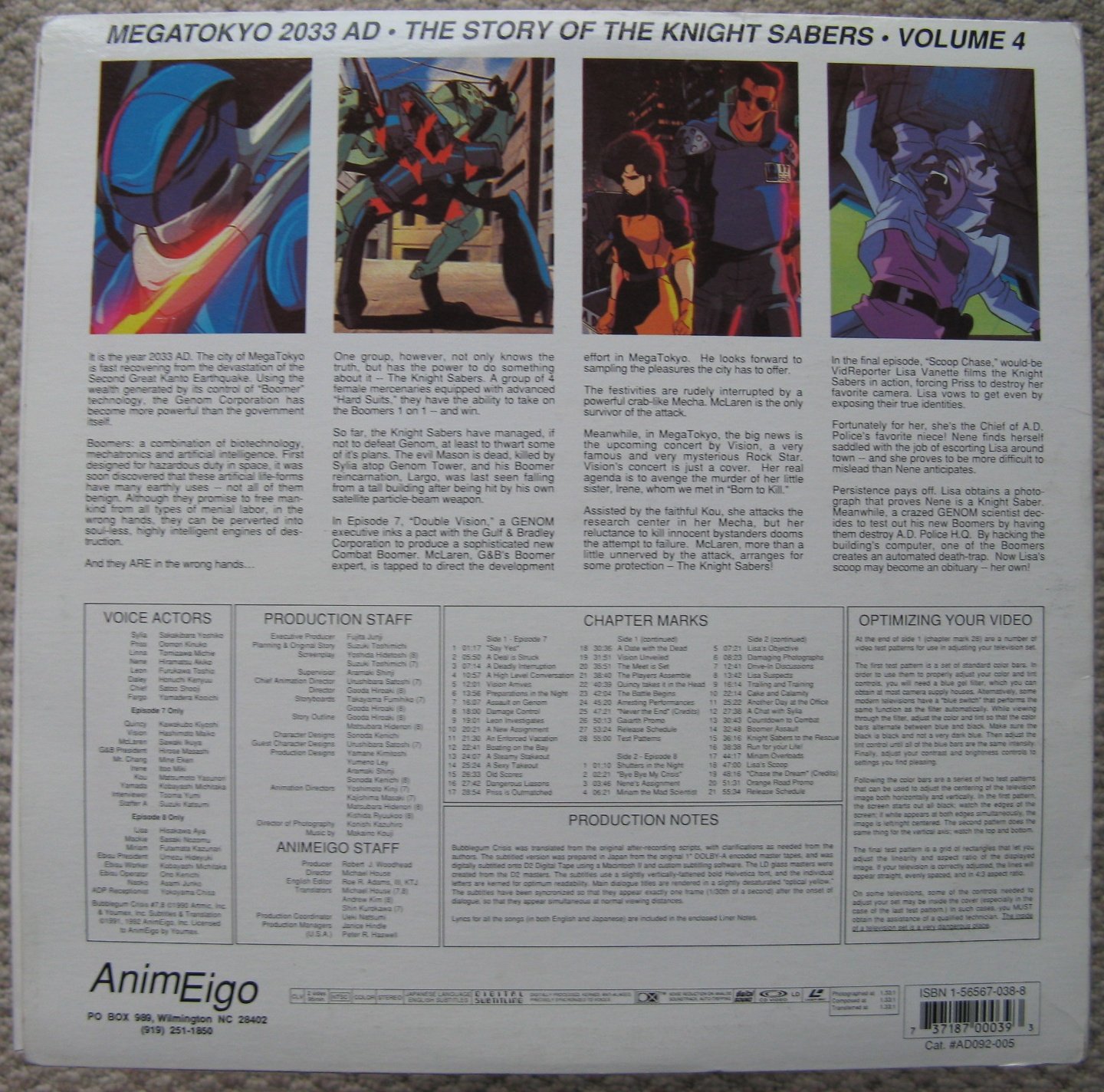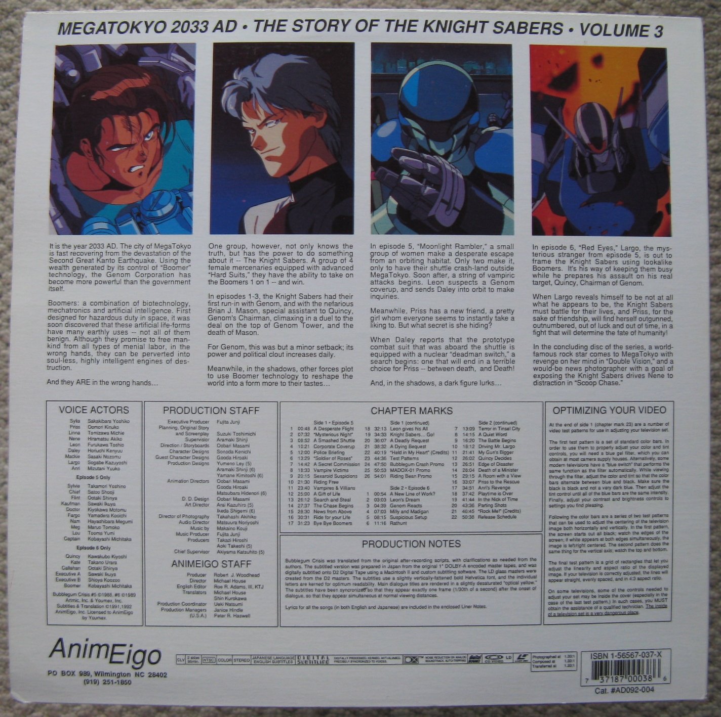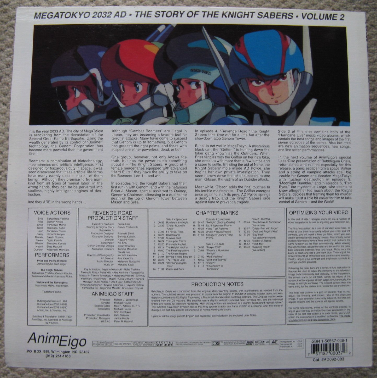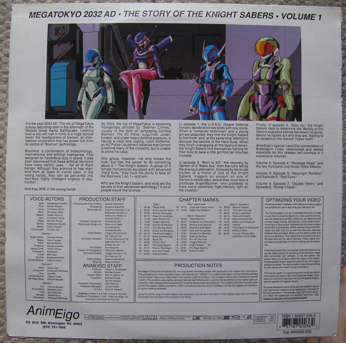 | Bubblegum Crisis Vol. 1 | sub | 3 | AnimEigo | $20 | 111m | Yes | 1 | front | back |