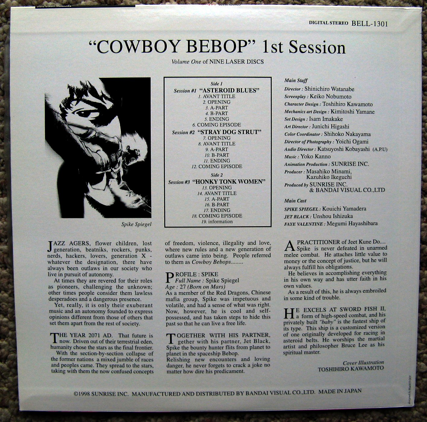 | Cowboy Bebop Session 0 | jap | 1 | Sunrise | 1500y | 27m | N/A | 1 | front | back |