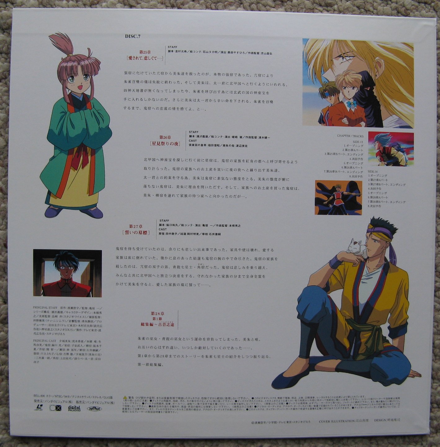 | Fushigi Yuugi Vol 1 (w/box) | jap | 4 | 8400y | 24m ea | Yes | 1 | front | back | |