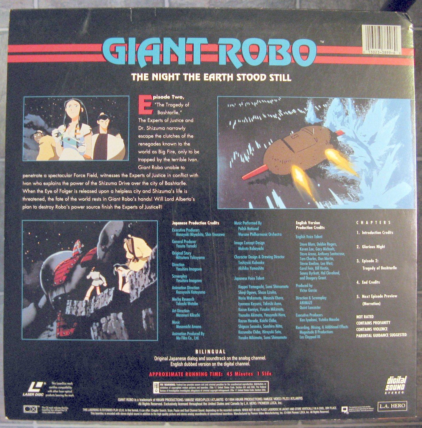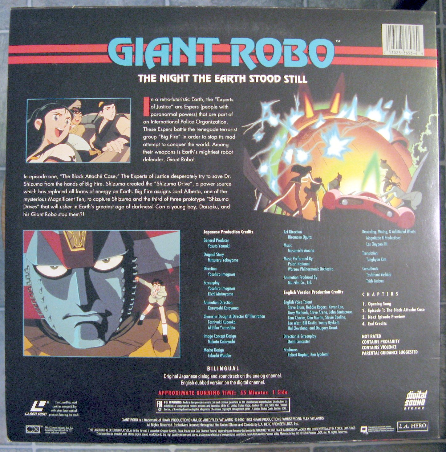| Giant Robo Vol. 1 | jap/dub | 1 | LA Hero | $15 | 55m | Yes | 1 | front | back |