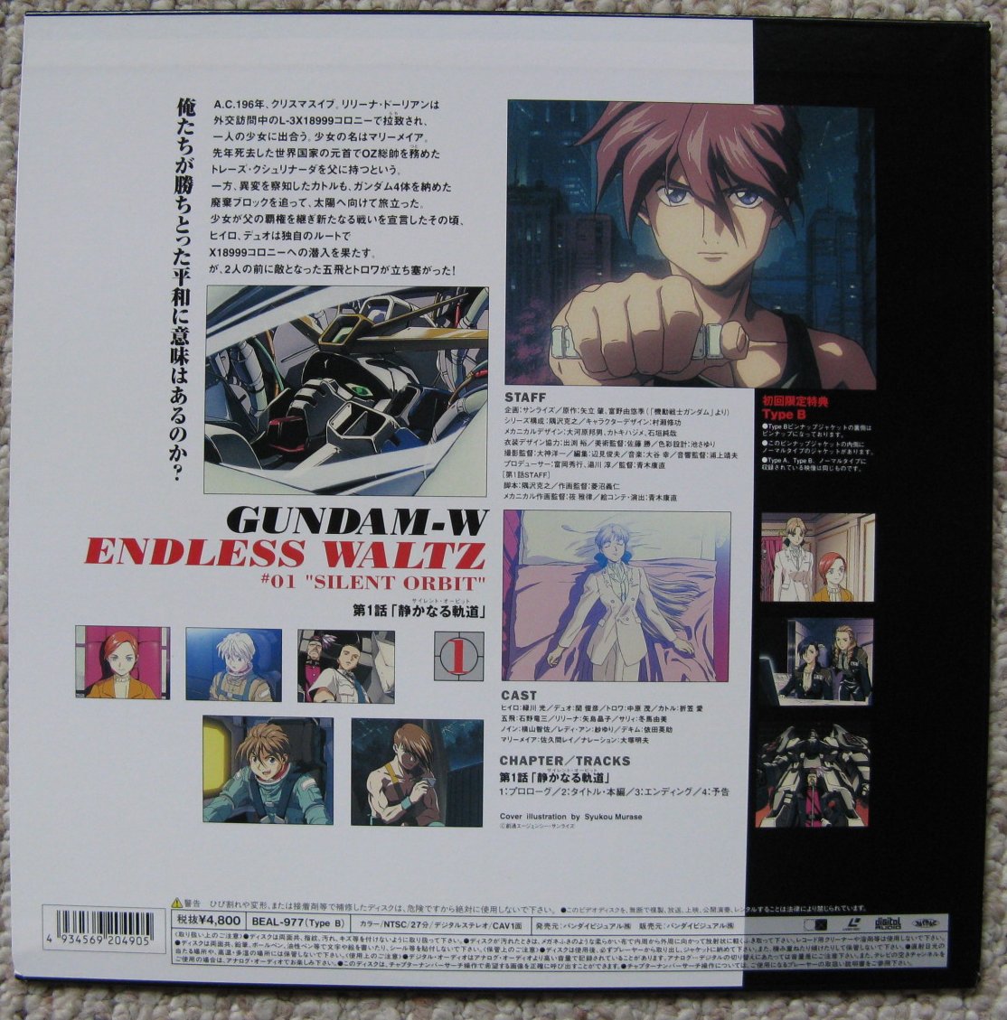 | Gundam Wing Vol. 1 (eps 1-8) | jap | 8 | Sunrise | $60 | 24m ea | Yes | 2 | front | back |