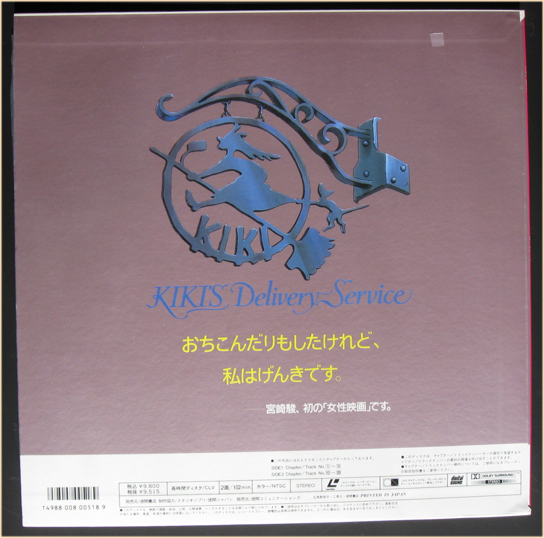 | Kiki's Delivery Service | jap | movie | Ghibli | 5800y | 102m | Yes | 1 | front | back |
